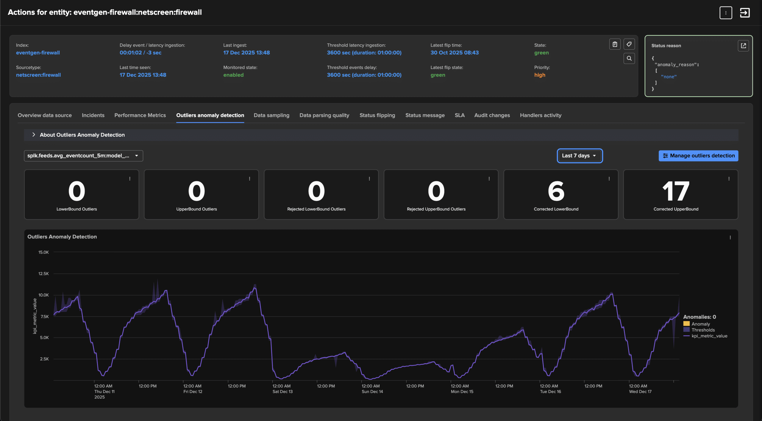 TrackMe provides an array of features designed to continuously monitor the Key Performance Indicators that matter most. Keep an eye on feed delays and latency, detect and alert on unusual trends with Machine Learning Outlier detection, and depend on a consistent and user-friendly workflow to manage alerts and detections – from automated investigations to TrackMe notable events.