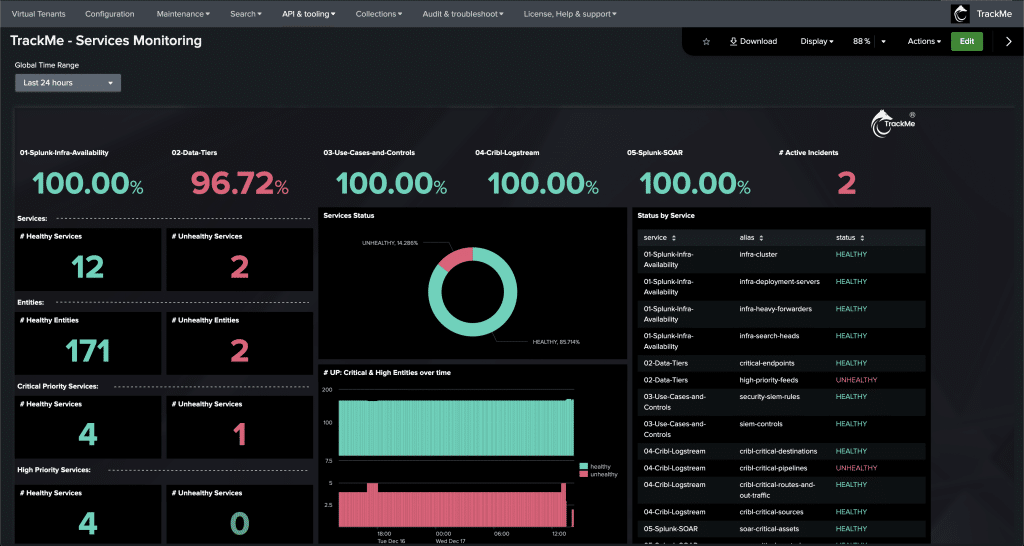 TrackMe provides dozens of pre-built use cases to monitor a variety of products and components, from monitoring Splunk Enterprise clusters, Deployment Servers, KVstores and even third party products such as Cribl Logstream, Splunk SOAR Cloud and On-premise.