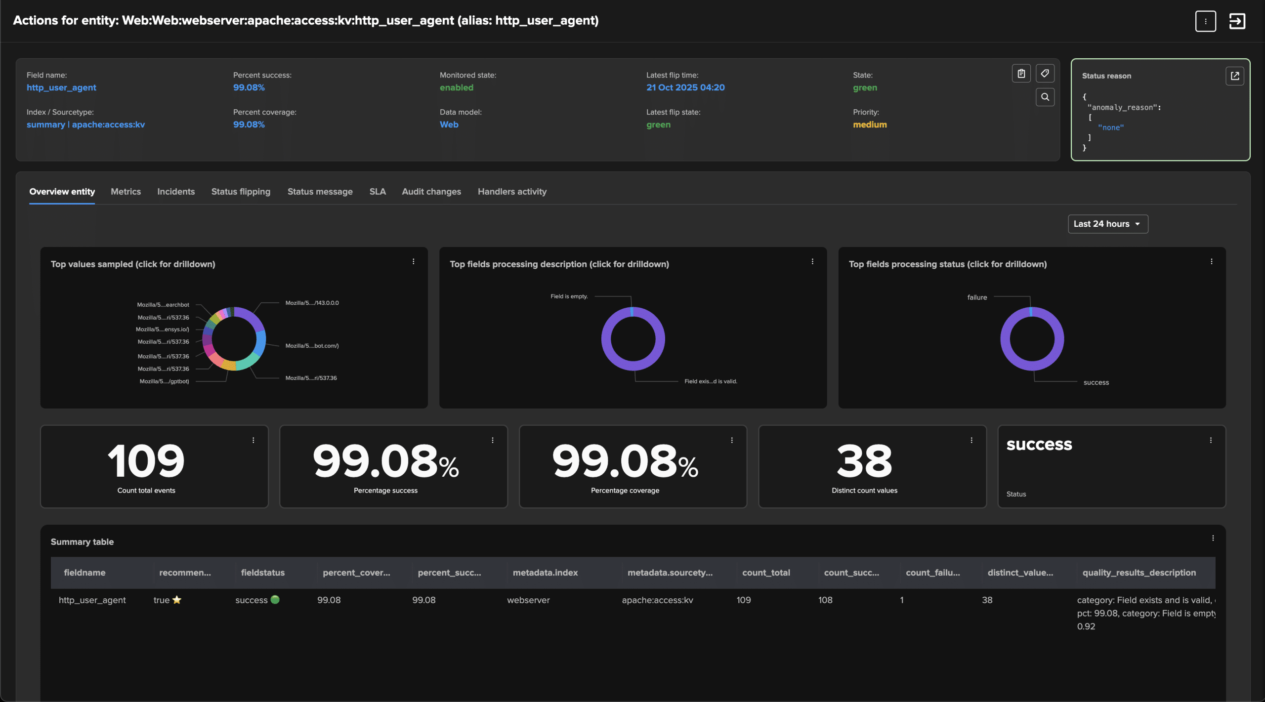 TrackMe introduces true stateful alerting, tracking the full lifecycle of an issue instead of firing repetitive alerts. Alerts are raised, updated, and closed automatically as entities transition between health states, giving teams clear visibility into what is new, what is ongoing, and what is resolved — without alert fatigue.