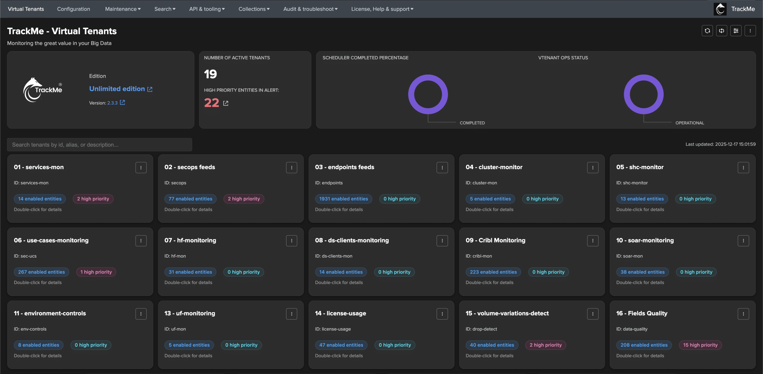At the root of TrackMe, create Virtual Tenants to scale, dedicate, experiment and much more!